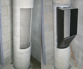 Options such as the possibility of installing it on the external wall of the building, allowing any sections of the chute to be changed if required. This provides an easy and effective way of maintaining the cleanliness of the refuse chute system which is something that conventional refuse chute could not offer.